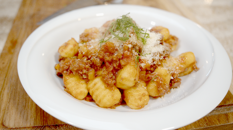 - While sauce is simmering, heat water in a large pot until it boils. Add the gnocchi and allow it to cook until it floats to the top.